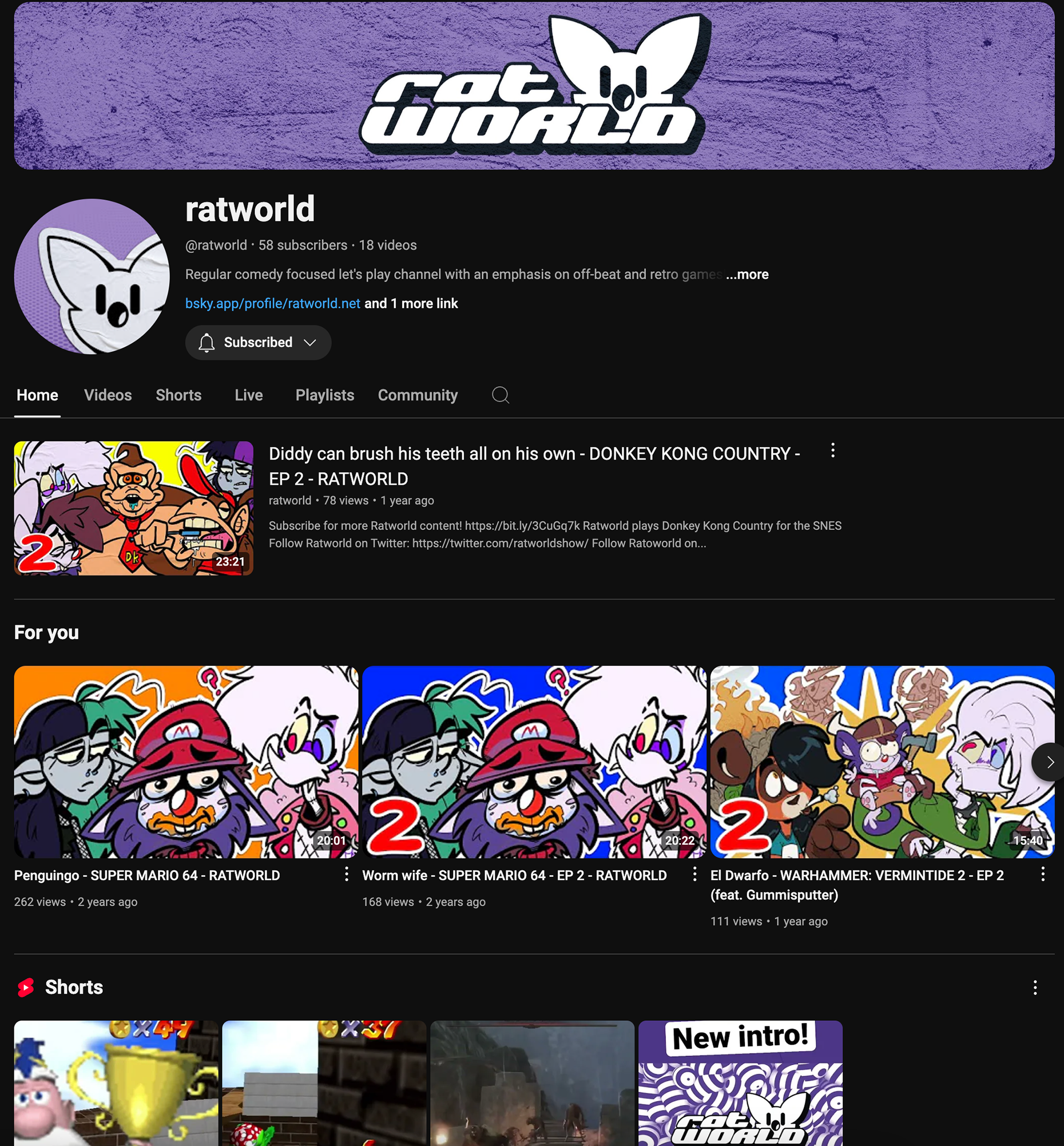 Ratworld YouTube Channel as of November 2024.