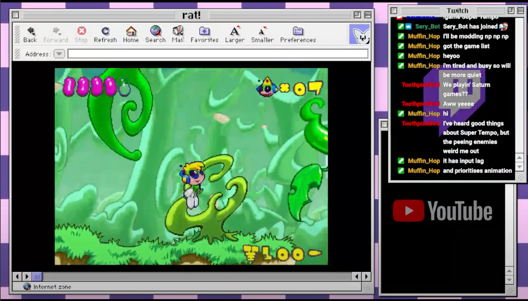 The stream was simulcast on both Twitch and Youtube, with both audiences able to see their comments in stylised OS UI windows.